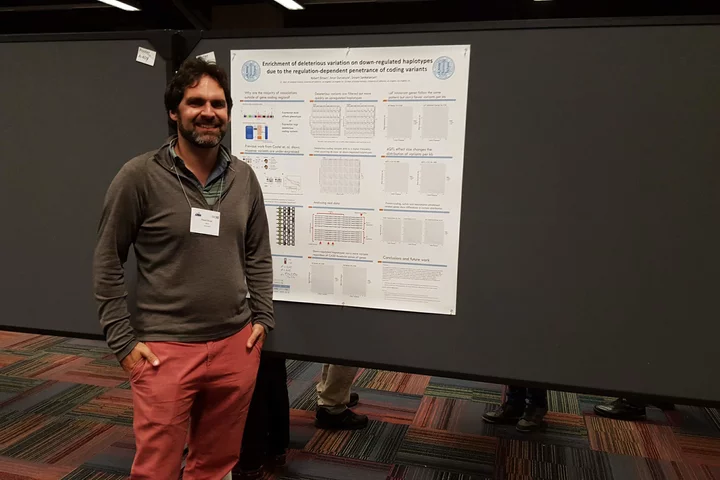 - Rob presents his poster on "Enrichment of deleterious aviation on down-regulated haplotypes due to the regulation-dependent penetrance of coding variants" at ASHG 2018 in San Diego!